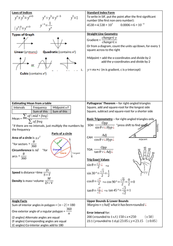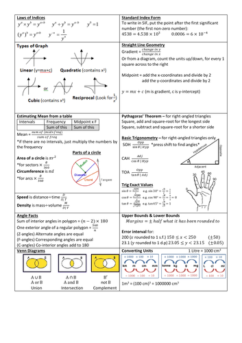 Gcse Maths Foundation Cheat Sheet Teaching Resources
